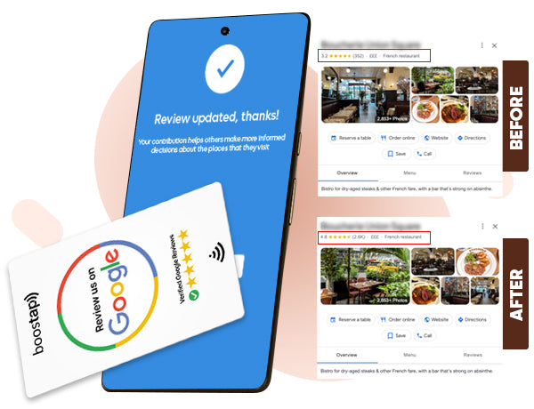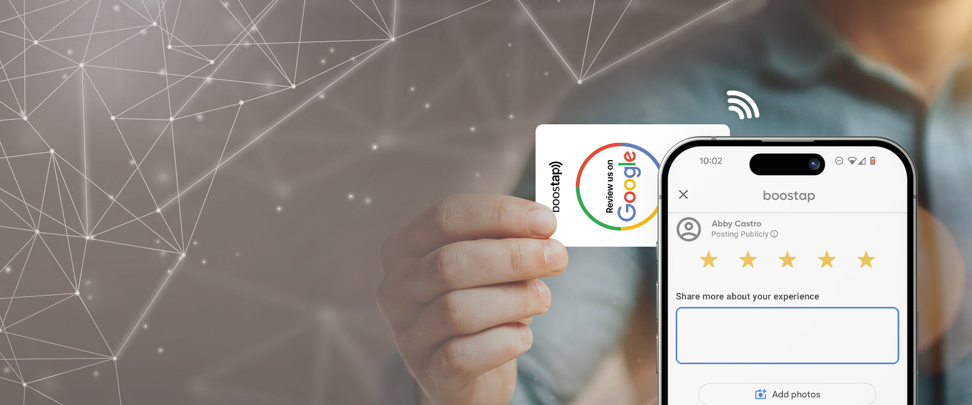 Karta akıllı telefonlarıyla dokunmanız yeterlidir; işletme sayfanıza yorum bırakmaya yönlendirilirler.