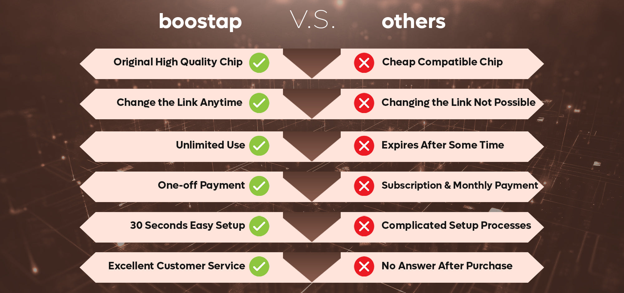 Kalite ve güven söz konusu olduğunda Boostap rekabette öne çıkıyor. Daha azıyla itibarınızı tehlikeye atmayın.
