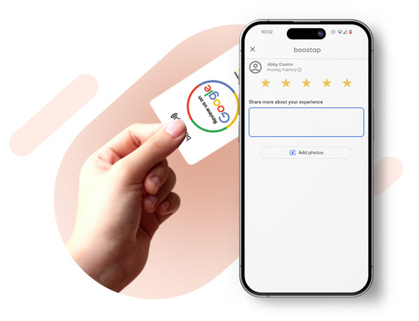 5. Dokun ve İncele: Kartı müşterilerinize verin, telefonlarının arkasına dokundurun ve Google İşletmenizin veya diğer profil sayfalarınızın, inceleme bırakmaya hazır şekilde anında görünmesini izleyin.